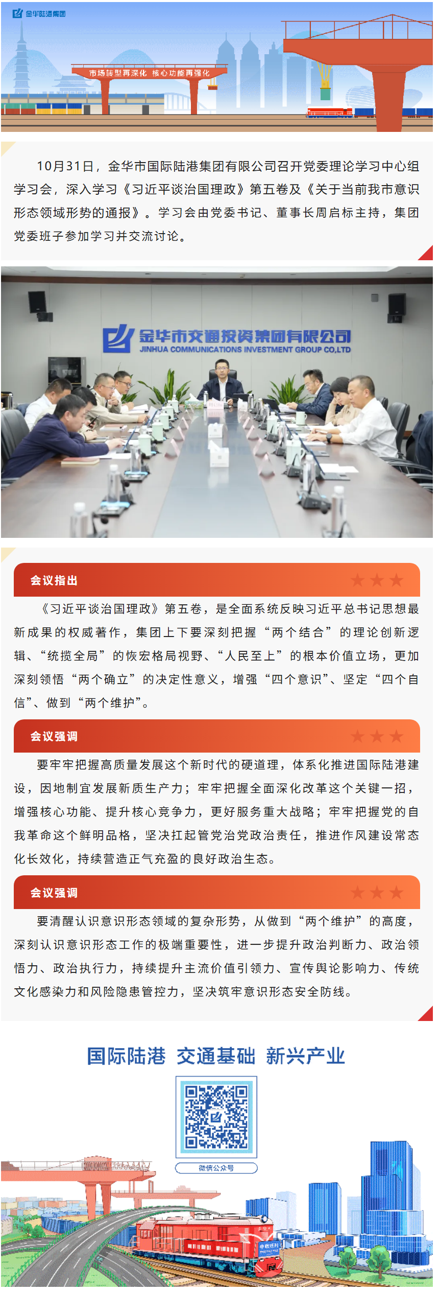 金華市國(guó)際陸港集團(tuán)有限公司召開黨委理論學(xué)習(xí)中心組專題學(xué)習(xí)會(huì)