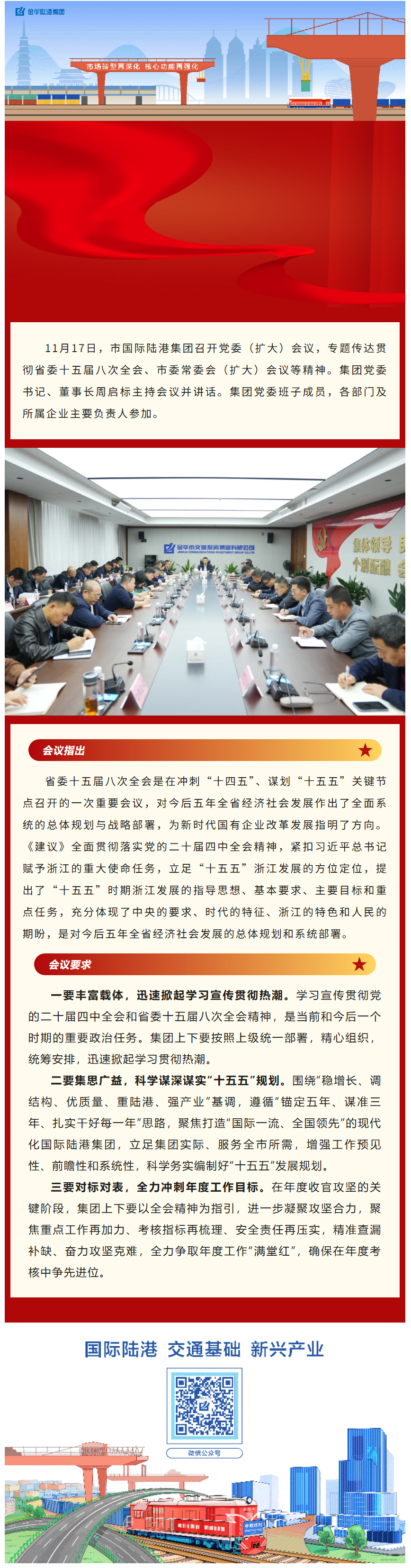 市國(guó)際陸港集團(tuán)召開(kāi)黨委(擴(kuò)大)會(huì)議傳達(dá)貫徹省委十五屆八次全會(huì)精神
