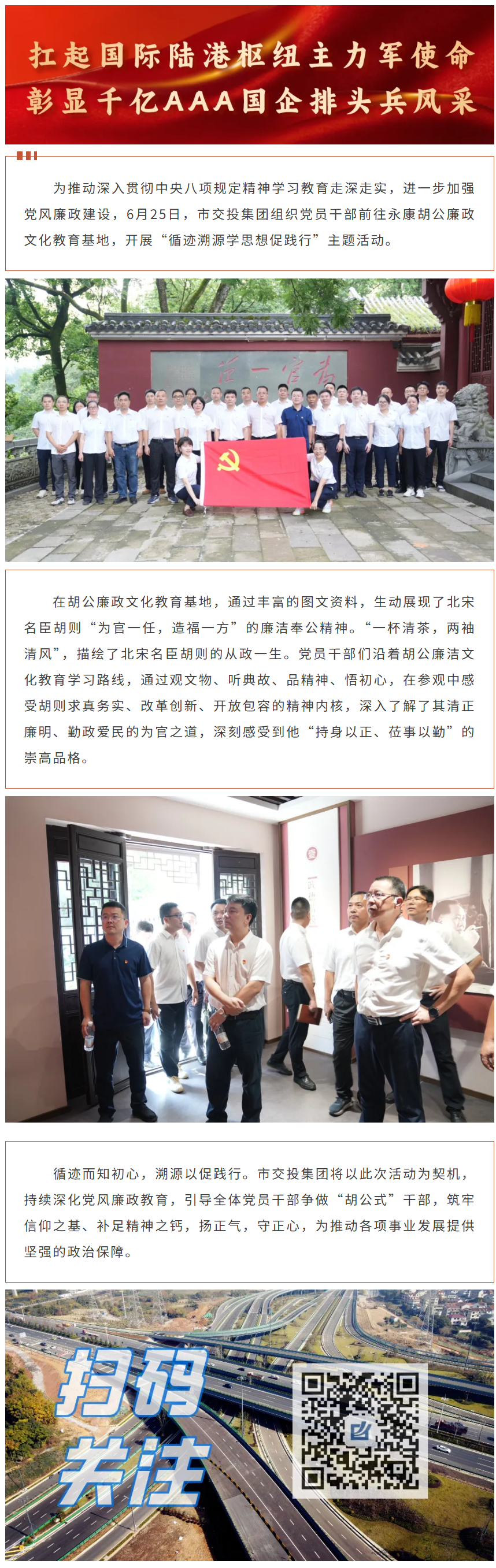 循跡溯源 學思想促踐行|市交投集團前往永康方巖胡公廉政文化教育基地參觀學習